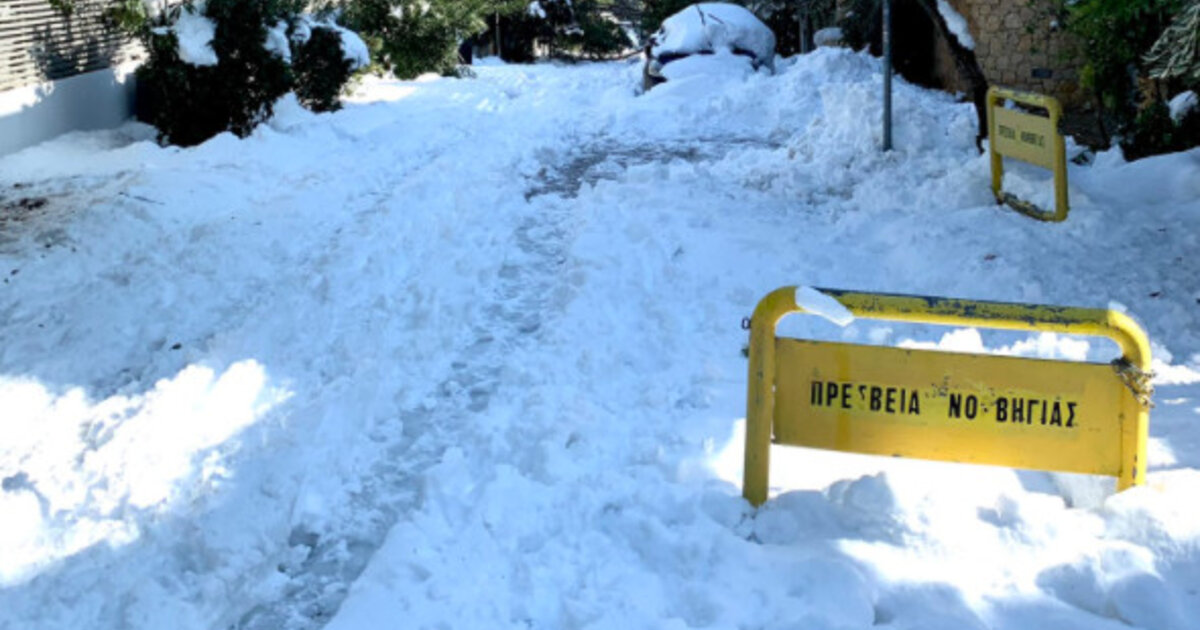 Σε ανάρτηση που έκανε στα μέσα κοινωνικής δικτύωσης δείχνει σε φωτογραφία έναν αποκλεισμένο από το χιόνι δρόμο ενώ στο βάθος διακρίνονται πεσμένα δέντρα.