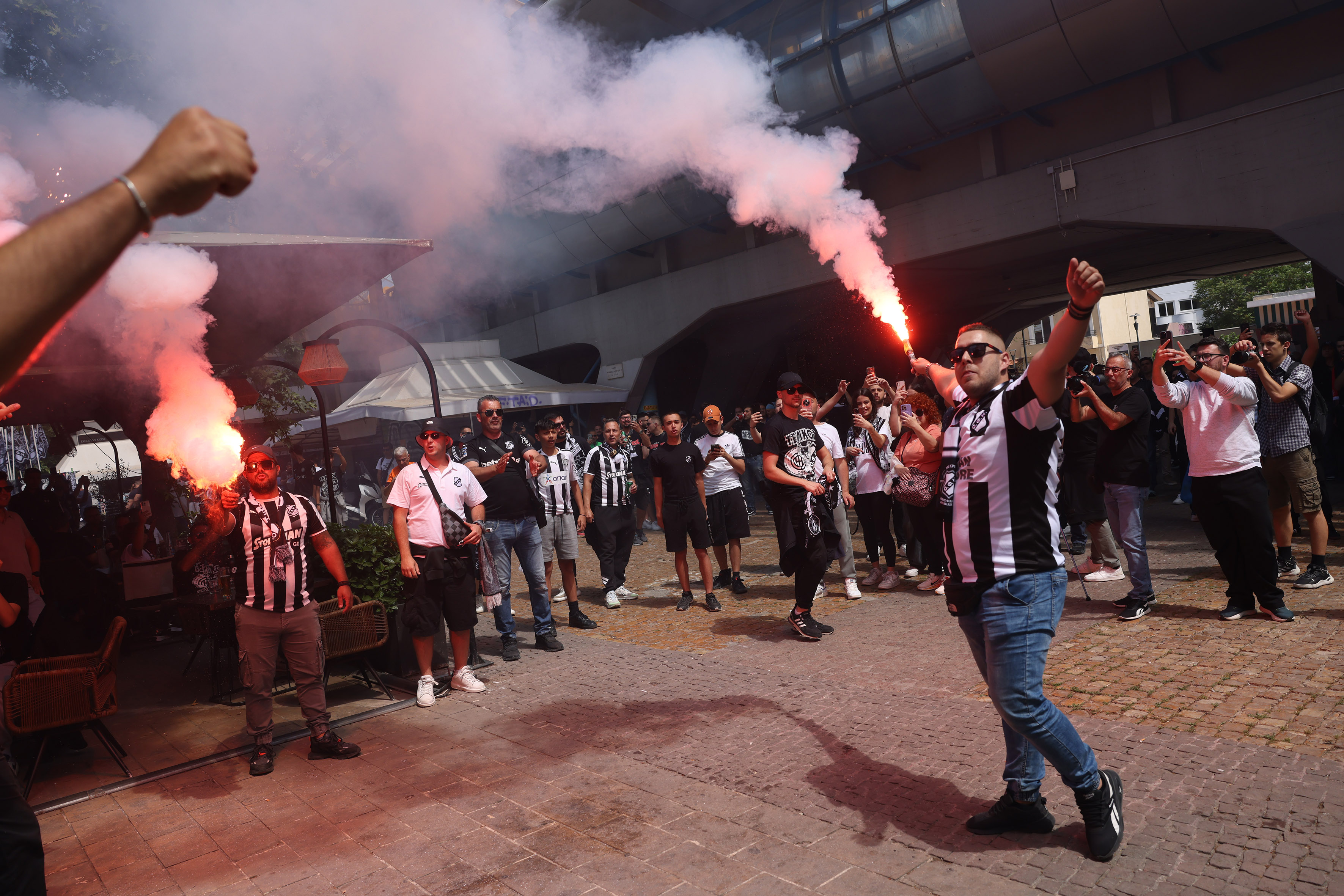 Σε μια απίστευτη κινητοποίηση, με σημαίες και ασταμάτητα συνθήματα, οι φίλαθλοι έδωσαν βροντερό παρών λίγες ώρες πριν τον ιστορικό τελικό κυπέλλου στο ΟΑΚΑ.
