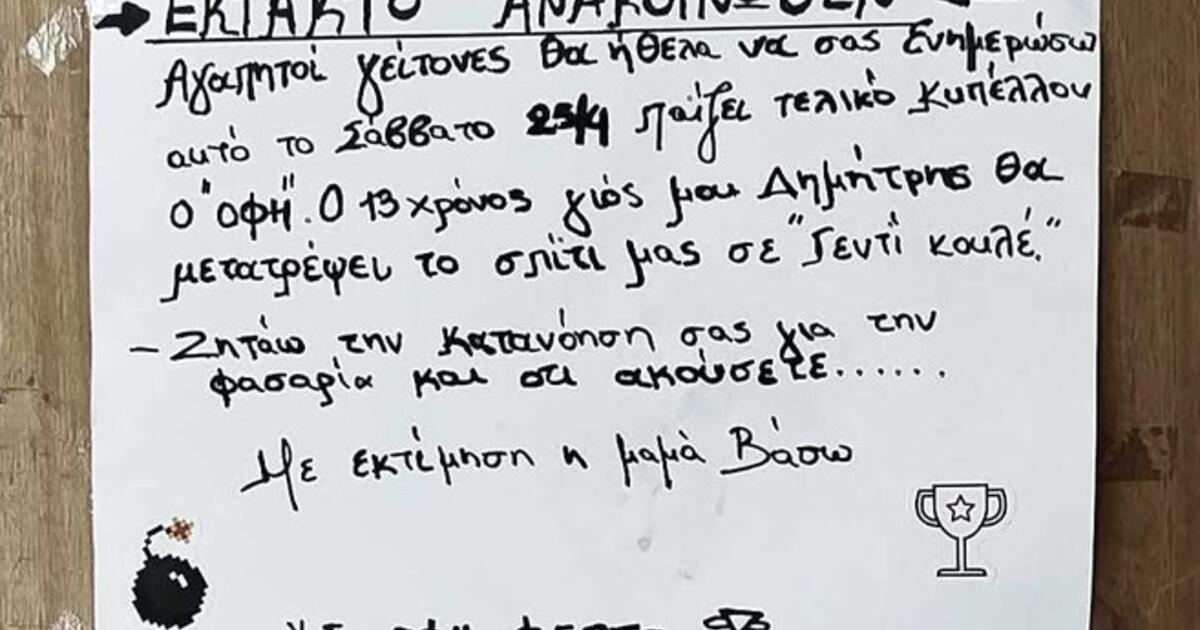 Γι' αυτό η μαμά του φρόντισε να ενημερώσει έγκαιρα τους γείτονες με ένα... έκτακτο ανακοινωθέν: