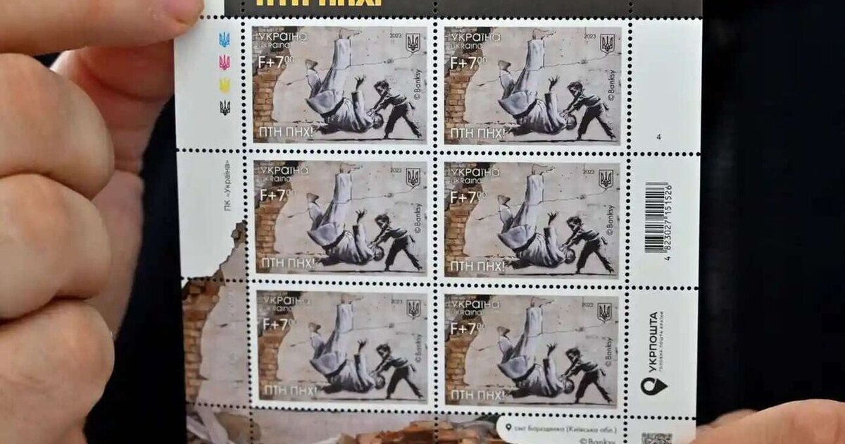 Ένα γραμματόσημο με αναπαραγωγή τοιχογραφίας του Banksy που απεικονίζει ένα αγόρι να νικάει έναν ενήλικο άνδρα στο τζούντο, εξέδωσε η Ουκρανία, με αφορμή τον ένα χρόνο από την εισβολή της Ρωσίας και να τιμήσει τα θύματα του πολέμου που συνεχίζεται.