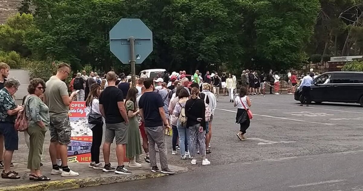 Το αδιαχώρητο και σήμερα στον Αρχαιολογικό Ανάκτορο στην Κνωσό με εκατοντάδες επισκέπτες να σχηματίζουν μεγάλες ουρές έξω από τις Αρχαιότητες.