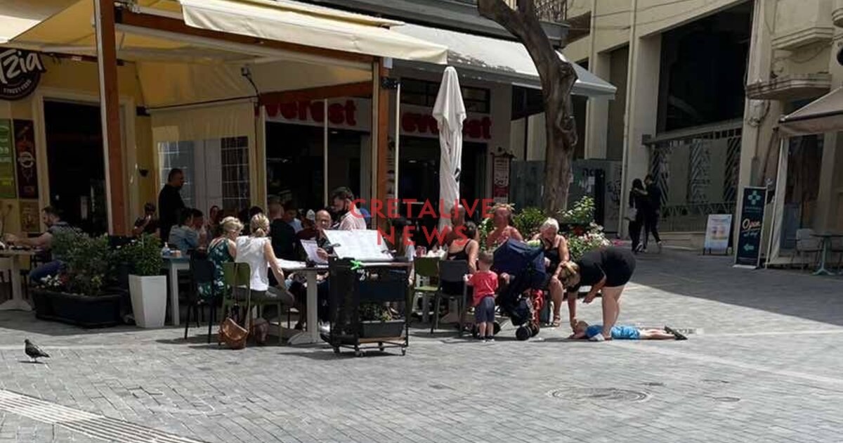 Συγκεκριμένα, παρέα τουριστών που έχει επισκεφτεί την Κρήτη, απολαμβάνει τον ήλιο και τη βόλτα και ο πιτσιρικάς της παρέας, όπως βλέπετε στη σχετική φωτογραφία, έχει ξαπλώσει και κοιμάται στο πλακόστρωτο!