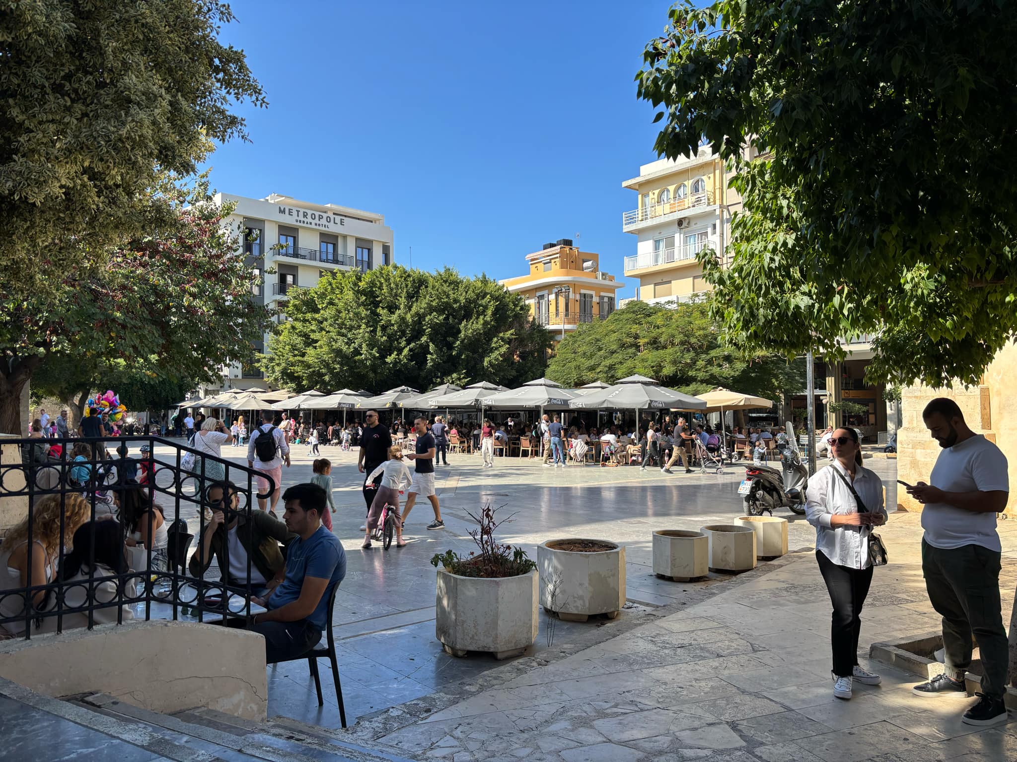 Κυριακή εν μέσω 3ημερου, και το κέντρο του Ηρακλείου έχει γεμίσει από ανθρώπους κάθε ηλικίας. Ο καιρός διευκολύνει τον κόσμο να χαρεί την ημέρα και να χαλαρώσει πριν από την μεγάλη εθνική εορτή.