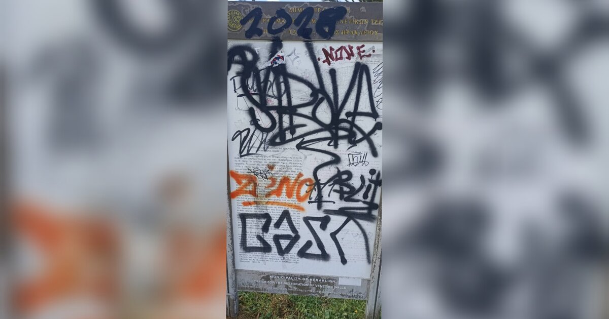 Οι βανδαλισμοί είχαν αναδειχθεί από το Cretalive τον Αύγουστο του 2023. Από τότε ως σήμερα ελάχιστα πράγματα έχουν αλλάξει. Στην εν λόγω πινακίδα δε, έχουν επιδεινωθεί καθώς στα υπάρχοντα γκράφιτι έχε προστεθεί και ένα ακόμη πορτοκαλί.