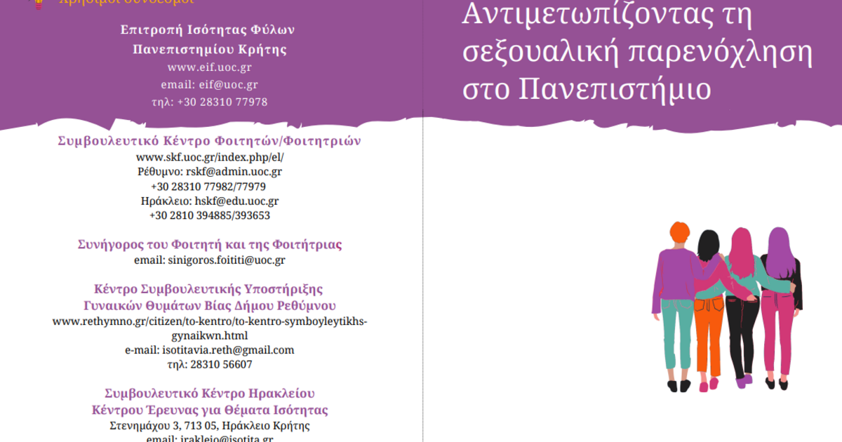 Ένα οδηγός διαχείρισης της σεξουαλικής βίας και της παρενόχλησης από την Επιτροπή Ισότητας Φύλων του Πανεπιστημίου Κρήτης