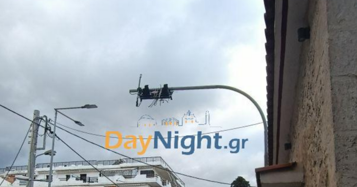 Το φανάρι βρίσκεται επί της Ηγουμένου Γαβριήλ και σύμφωνα με το daynight.gr είναι δεμένο πρόχειρα με σκοινί.