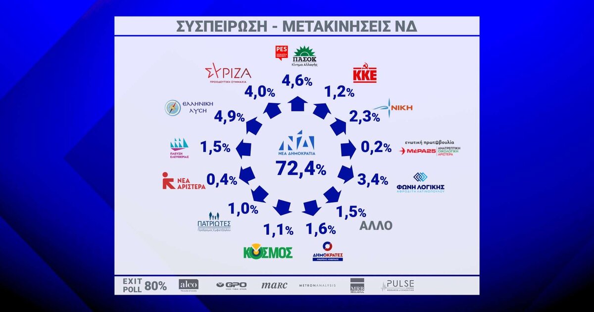 Τη δική τους αξία έχουν τα στοιχεία για την συσπείρωση των κομμάτων και τις μετακινήσεις των ψηφοφόρων κατά τη σημερινή εκλογική διαδικασία. Έτσι, σύμφωνα με τους πίνακες της ΕΡΤ: