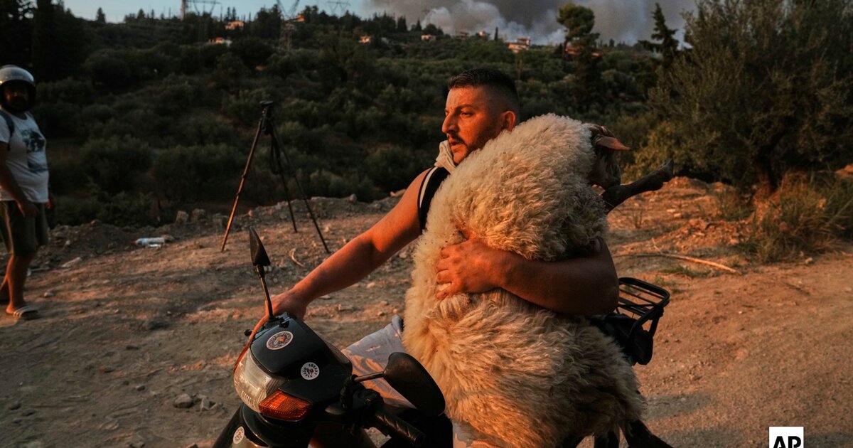 Εν μέσω πύρινης λαίλαπας στην Πάτρα, ο νεαρός προσπαθεί απεγνωσμένα να σώσει το πρόβατο
