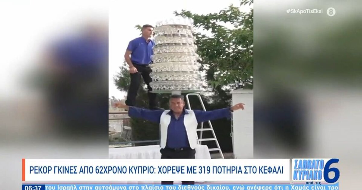 Ρεκόρ Γκίνες από 62χρονο Κύπριο: Χόρεψε με 319 ποτήρια στο κεφάλι