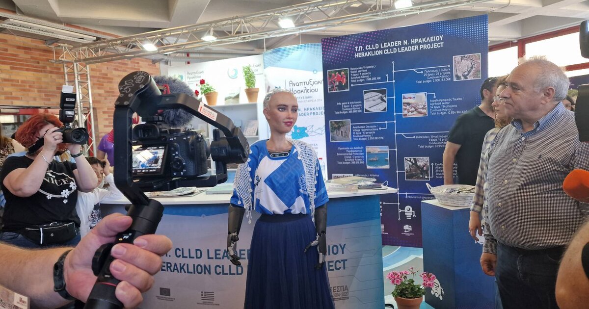 Η Sophia, που μιλά 20 και πλέον γλώσσες μεταξύ των οποίων και τα ελληνικά εμφανίστηκε για πρώτη φορά στην Κρήτη και όπως ήταν φυσικό αποτέλεσε το επίκεντρο του ενδιαφέροντος για μικρούς και μεγάλους.
