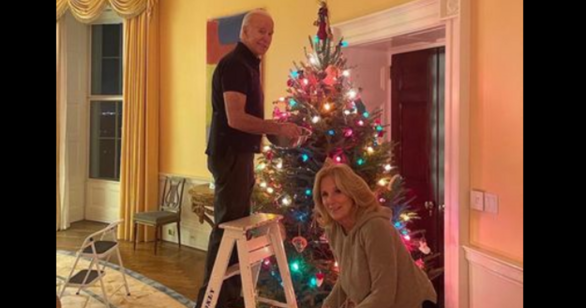 «Μόνο μερικές τελευταίες πινελιές! Ελπίζουμε εσείς και οι αγαπημένοι σας να περάσετε μια υπέροχη παραμονή Χριστουγέννων» γράφει χαρακτηριστικά ο Μπάιντεν.