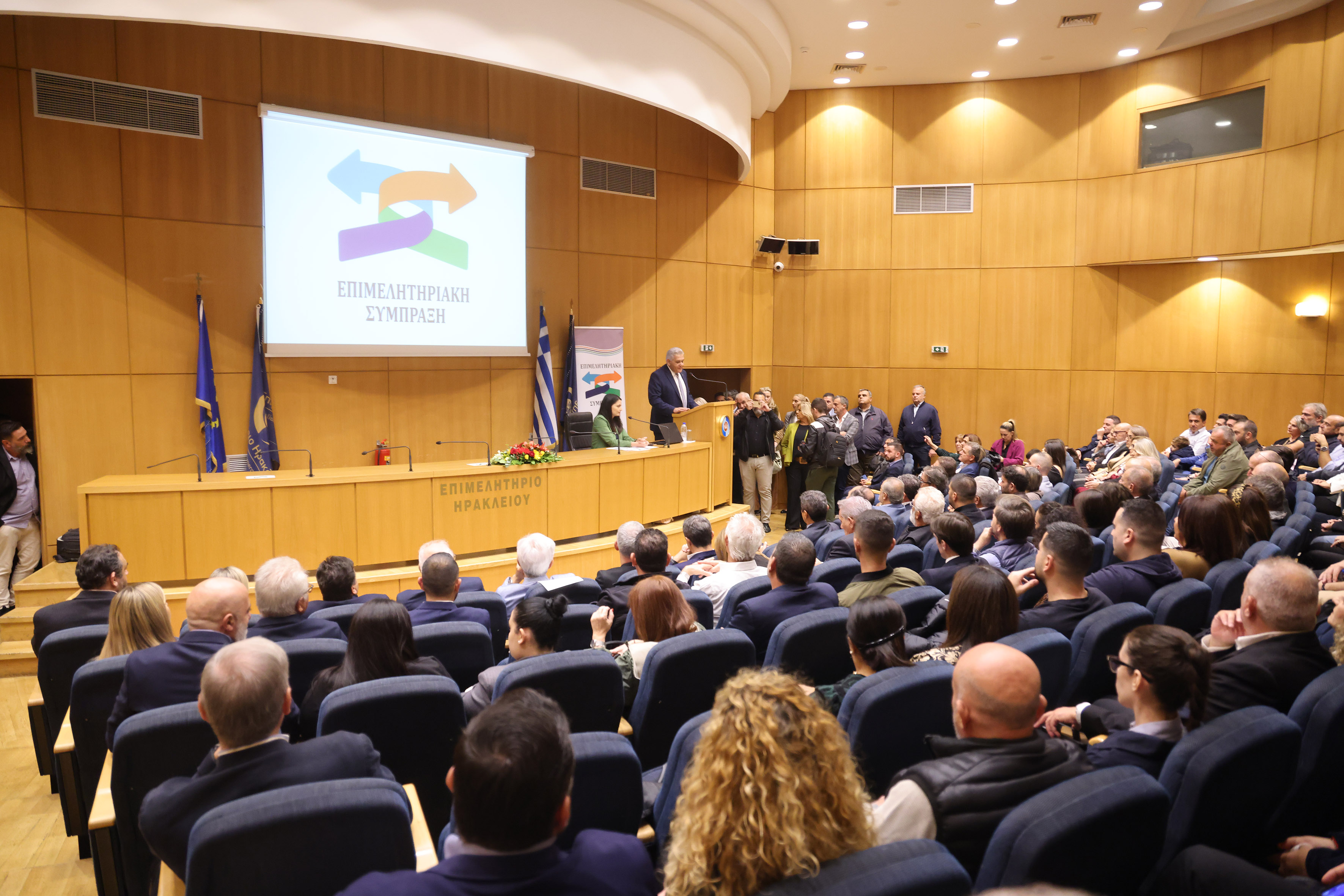 Μικρή αποδείχθηκε η αίθουσα Καστελλάκη του Επιμελητηρίου Ηρακλείου, που χθες πλημμύρισε από κόσμο που έδωσε το "παρών" στην εκδήλωση της "Επιμελητηριακής Σύμπραξης" του Βαγγέλη Καρκανάκη.