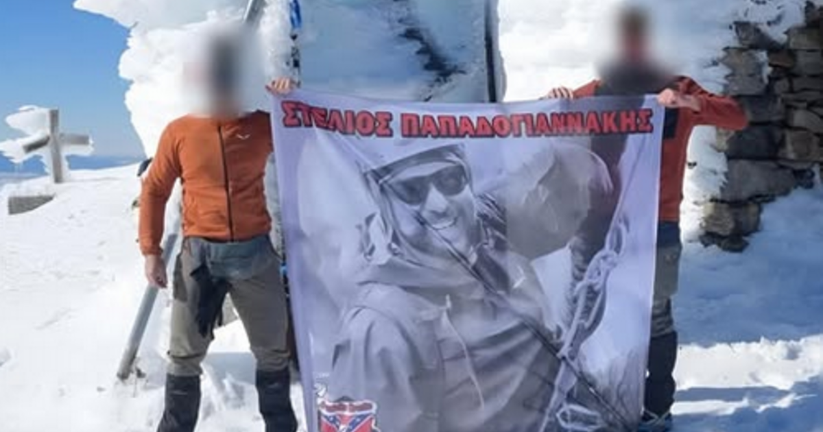 Ιδιαίτερη συγκίνηση προκαλεί το στιγμιότυπο δύο ορειβατών που έφτασαν στην κορυφή του Τίμιου Σταυρού στον Ψηλορείτη, έχοντας μαζί τους τη φωτογραφία του αδικοχαμένου Στέλιου Παπαδογιαννάκη, αποτίοντας φόρο τιμής στη μνήμη του.