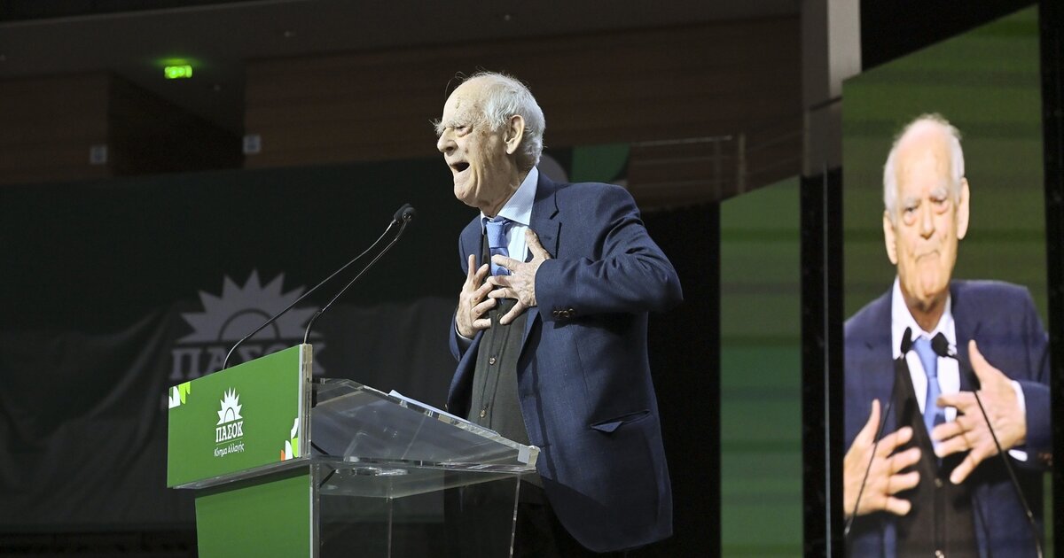 Στα 89 του χρόνια, το ιστορικό στέλεχος του ΠΑΣΟΚ, εμφανώς συγκινημένος, μίλησε το Σάββατο στο Συνέδριο της παράταξης, στο γήπεδο του Τάε Κβον Ντο και είπε το δικό του «αντίο».