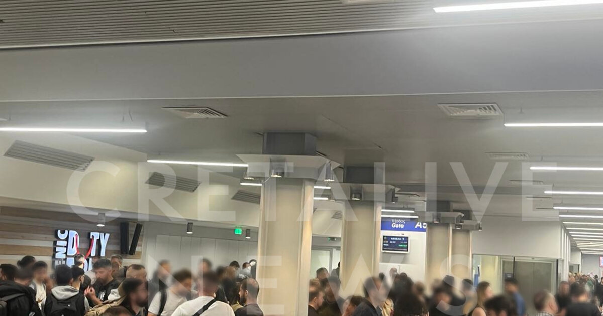 Το πρωί και θα το κάνουν μετά τα μεσάνυχτα απόψε. Λίγο πριν τα μεσάνυχτα και οι φωτογραφίες του cretalive δείχνουν την ασφυκτικά γεμάτα αίθουσα αναχωρήσεων κυρίως από τους φίλους του ΟΦΗ που παρά την ταλαιπωρία δεν δείχνουν διάθεση να χαλάσουν το κέφι και τη διάθεση τους.