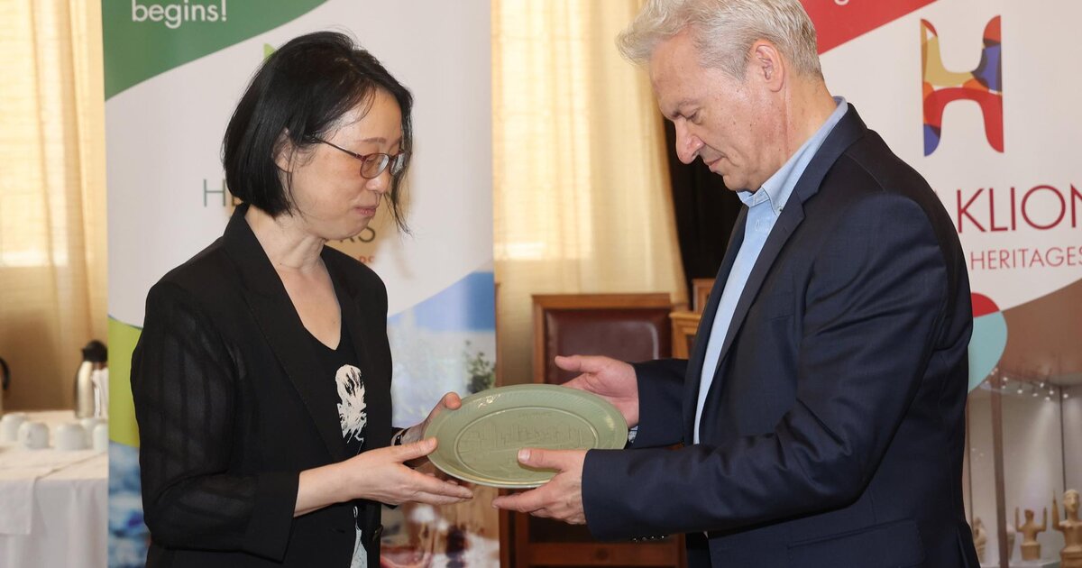 Το αγαλματίδιο με τον Γρύπα, το σύμβολο του Ηρακλείου, και τον χάρτη του J. Peeters σε γκραβούρα με τον τίτλο «Η νήσος Κρήτη», ήταν τα αναμνηστικά δώρα του Δημάρχου Ηρακλείου προς την επικεφαλής της Κινεζικής αποστολής από την αδελφοποιημένη πόλη Νίνγκμπο, Σου Γιανάν.