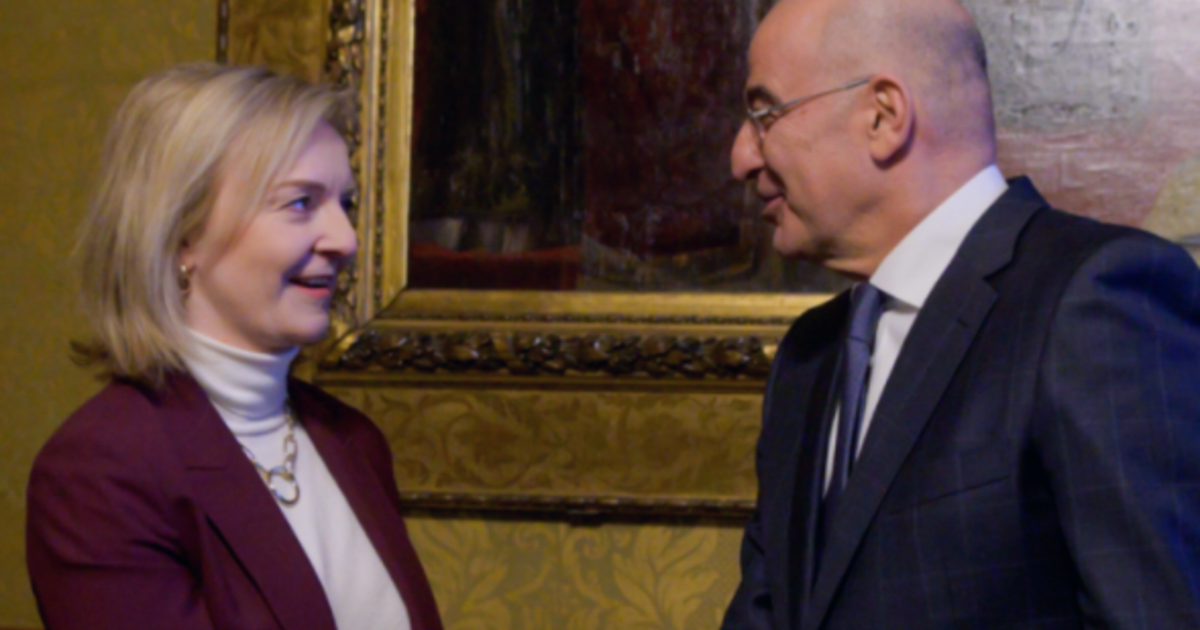 Το tweet που επιχείρησε να κάνει η Λιζ Τρας μετά τη συνάντησή της με τον Νίκο Δένδια μετατράπηκε σε epic fail. Και αυτό γιατί η Βρετανή ΥΠΕΞ αντί να ταγκάρει τον Έλληνα συναδέλφό της τάγκαρε τον... τραγουδιστή Νίκο Βέρτη!