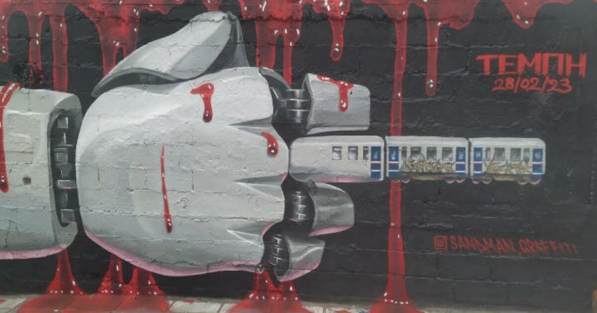 Ένα εμπνευσμένο γκράφιτι που είναι αφιερωμένο στα θύματα του τραγικού δυστυχήματος με τα τρένα στα Τέμπη, αλλά και σε όσους ευθύνονται γι’ αυτό, ώστε ποτέ να μην ξεχαστεί η υπόθεση, είναι ζωγραφισμένο σε τοίχο του γηπέδου του Απόλλωνα στην Καλαμαριά.