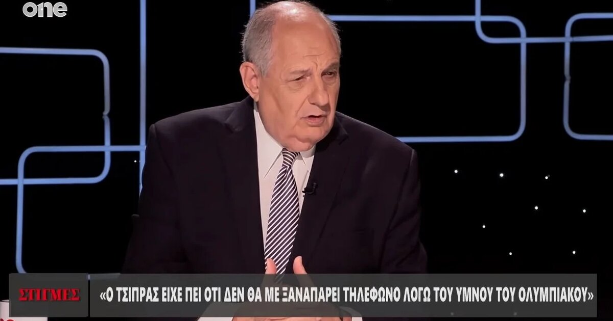 «Τελικά τον ύμνο του Ολυμπιακού τον έβγαλα (σ.σ. από το να τον ακούν όσοι τον καλούν) γιατί όταν πήγα στο υπουργείο Εξωτερικών έτυχε να με πάρει ο Νίκος Κοτζιάς, που είναι βαμμένος ΑΕΚτζής, και μου λέει “Πας καλά είσαι στο υπουργείο Εξωτερικών και χτυπάει ο ύμνος του Ολυμπιακού όταν σε καλούν; Βγάλε το τώρα αμέσως” Και το έβγαλα» πρόσθεσε.