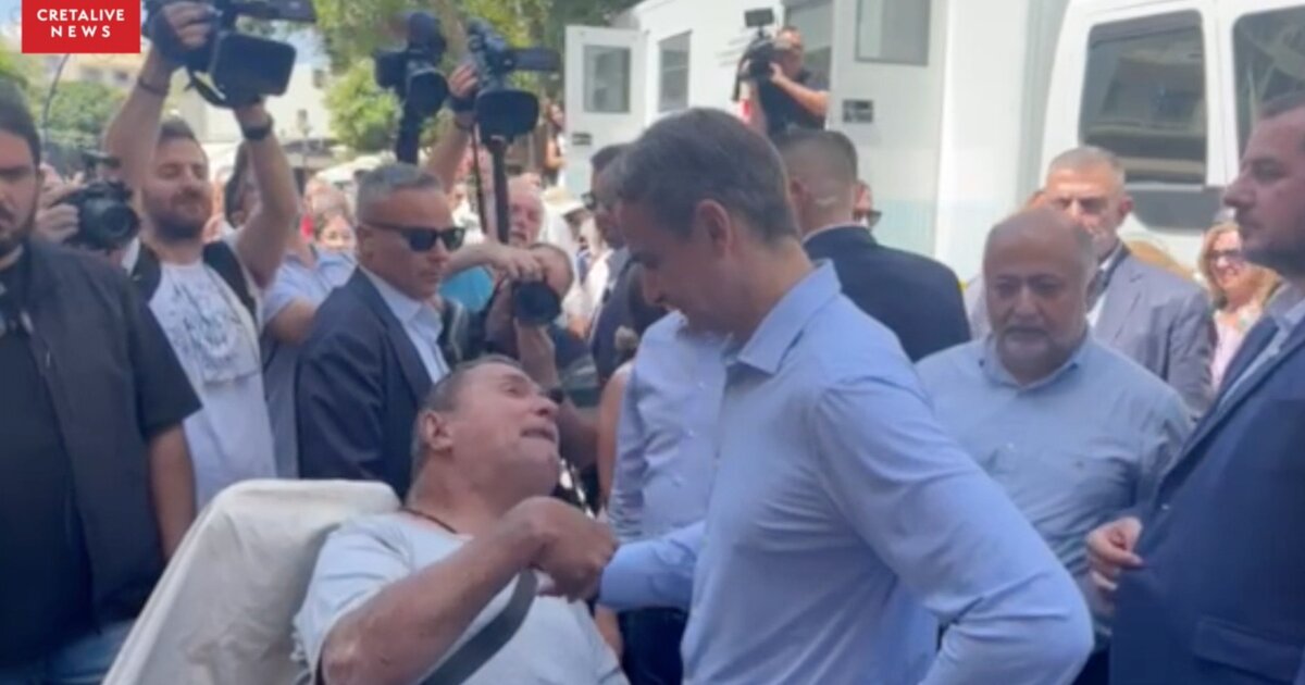Ο Αντώνης, άτομο με ειδικές ανάγκες, που κυκλοφορεί με το αμαξίδιο του στο κέντρο του Ηρακλείου, περίμενε υπομονετικά να ολοκληρωθεί η συνάντηση του πρωθυπουργού στη Λότζια με τον δήμαρχο προκειμένου να συναντήσει τον Κυριάκο Μητσοτάκη.