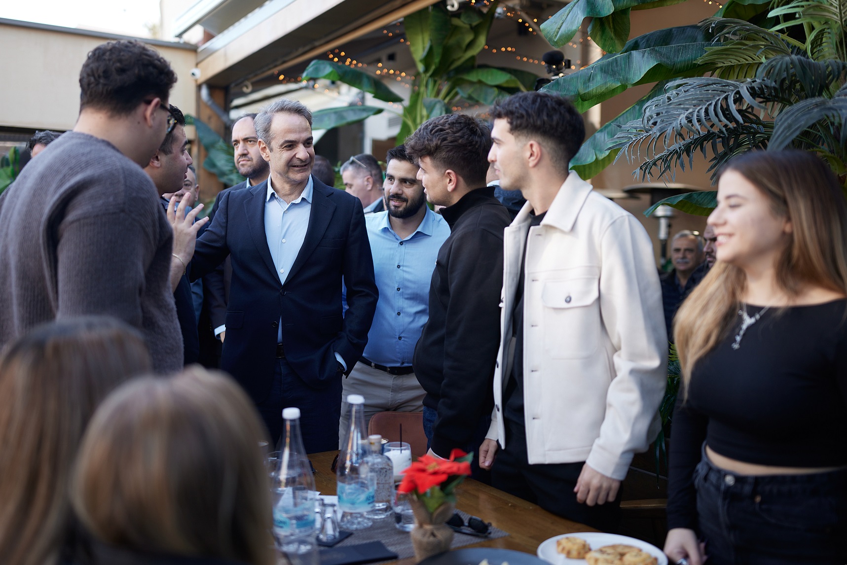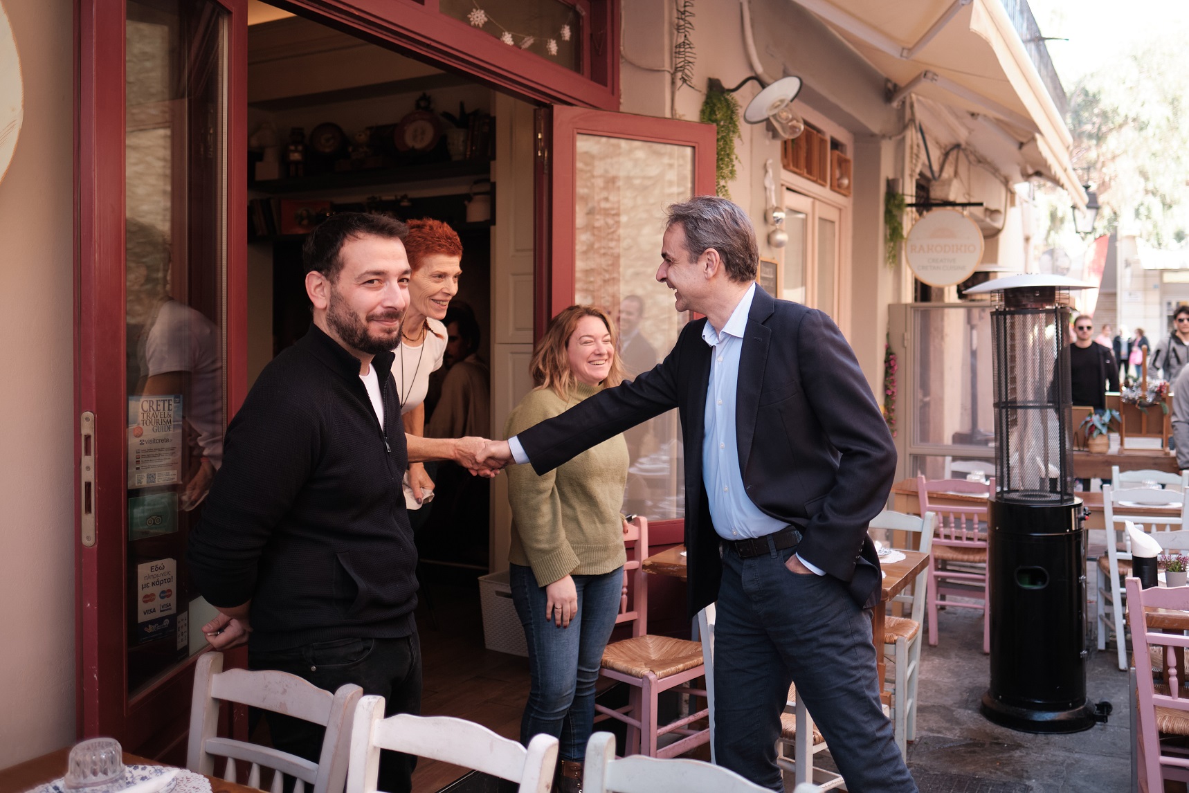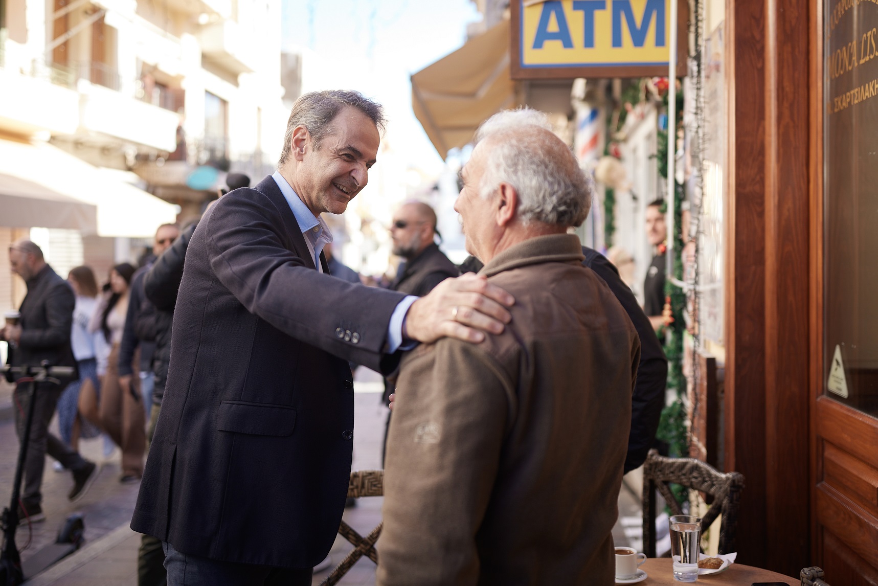 Ο Κ.Μητσοτάκης, περπατώντας ως το "Σπίτι του Πολιτισμού", χθες, σταμάτησε πολλές φορές, σε καταστήματα και καφετέριες, χαιρέτησε και συνομίλησε με κόσμο.