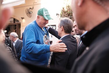 Μάλιστα, ο "στίβος" της Πολιτικής και το μπάσκετ συναντήθηκαν έξω από το "Σπίτι του Πολιτισμού". Ο Πρωθυπουργός Κυριάκος Μητσοτάκης φτάνοντας στο χώρο διεξαγωγής της χθεσινής εκδήλωσης, αντίκρισε μπροστά του έναν "θρύλο" του μπάσκετ: τον Δημήτρη Κοκολάκη, παλαίμαχο διεθνή μπασκετμπολίστα του Παναθηναϊκού και του Άρη, με τον οποίο είχε μια σύντομη κουβέντα.