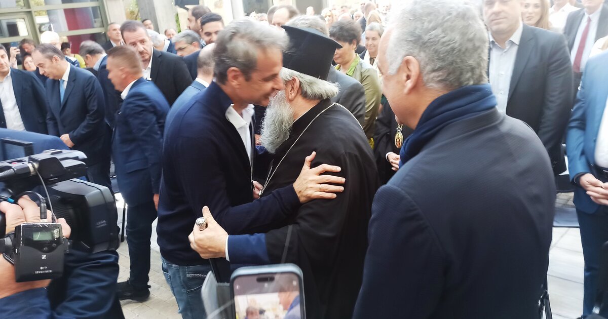 Ο κ. Μητσοτάκης απευθυνόταν συχνά στον Αρχιεπίσκοπο Κρήτης, κ. Ευγένιο, ο οποίος παρευρέθηκε στην εκδήλωση και την ώρα της τοποθέτησής του αναφερόταν στον Σεβασμιώτατο.