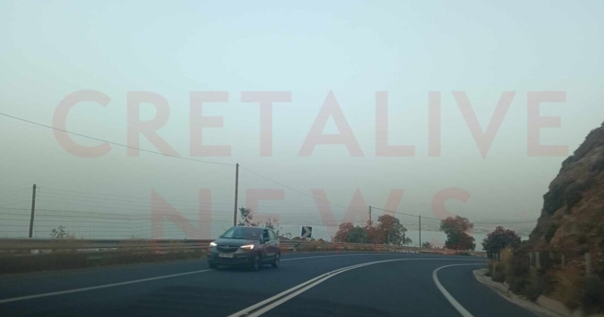 Στον δρόμο από την Αγία Πελαγία προς το Ηράκλειο, θάλασσα και ουρανός είχαν γίνει στην κυριολεξία ένα, ενώ ένα "θολό" πέπλο έμοιαζε να έχει καλύψει την πόλη.