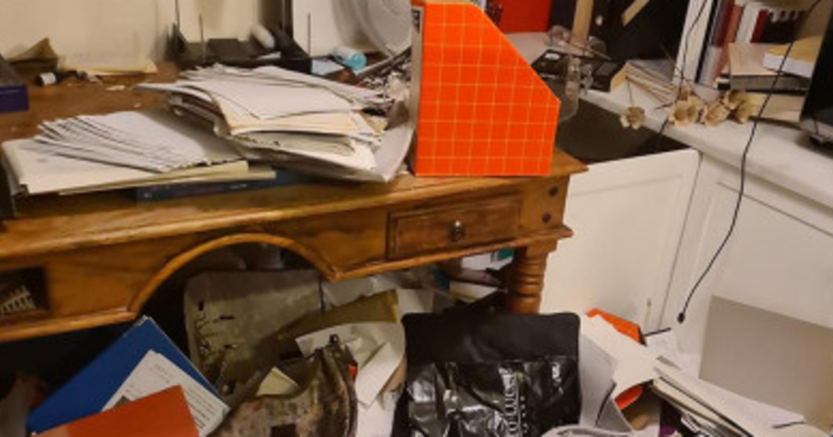 Όπως έγραψε, «αυτό είναι το γραφείο του σπιτιού μου στην Αθήνα μετά από μια επιτυχημένη επιδρομή κλεφτών. Δώρο γενεθλίων».