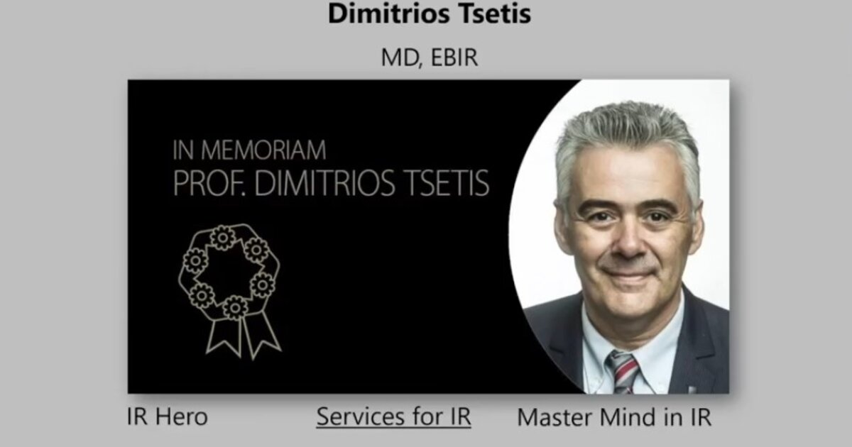 Με τεράστια υπερηφάνεια αλλά και βαθιά θλίψη, αποδέχομαι το βραβείο «CIRSE Distinguished Fellow» εκ μέρους του αείμνηστου πατέρα μου, Καθηγητή Δημήτρη Τσετή.
