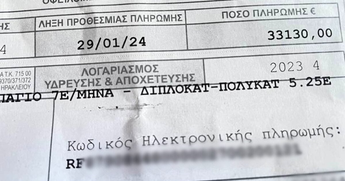 Του ήρθε λογαριασμός νερού…33.000 ευρώ!