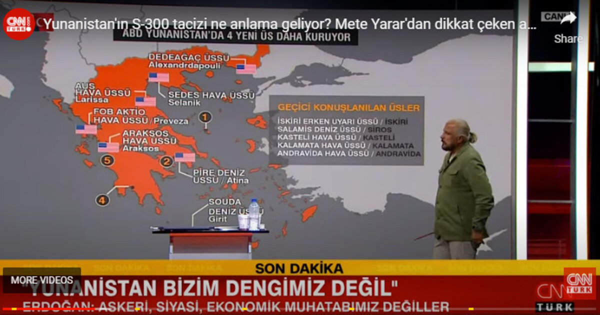 Ο τούρκος αναλυτής σε θέματα ασφαλείας Μετέ Γιαράρ (φωτογραφία, επάνω, από το YouTube) μιλά στον τηλεοπτικό σταθμό CNNTURK και αναρωτιέται για πόσο ακόμα θα συνεχιστεί το πρόβλημα της Τουρκίας με την Ελλάδα.