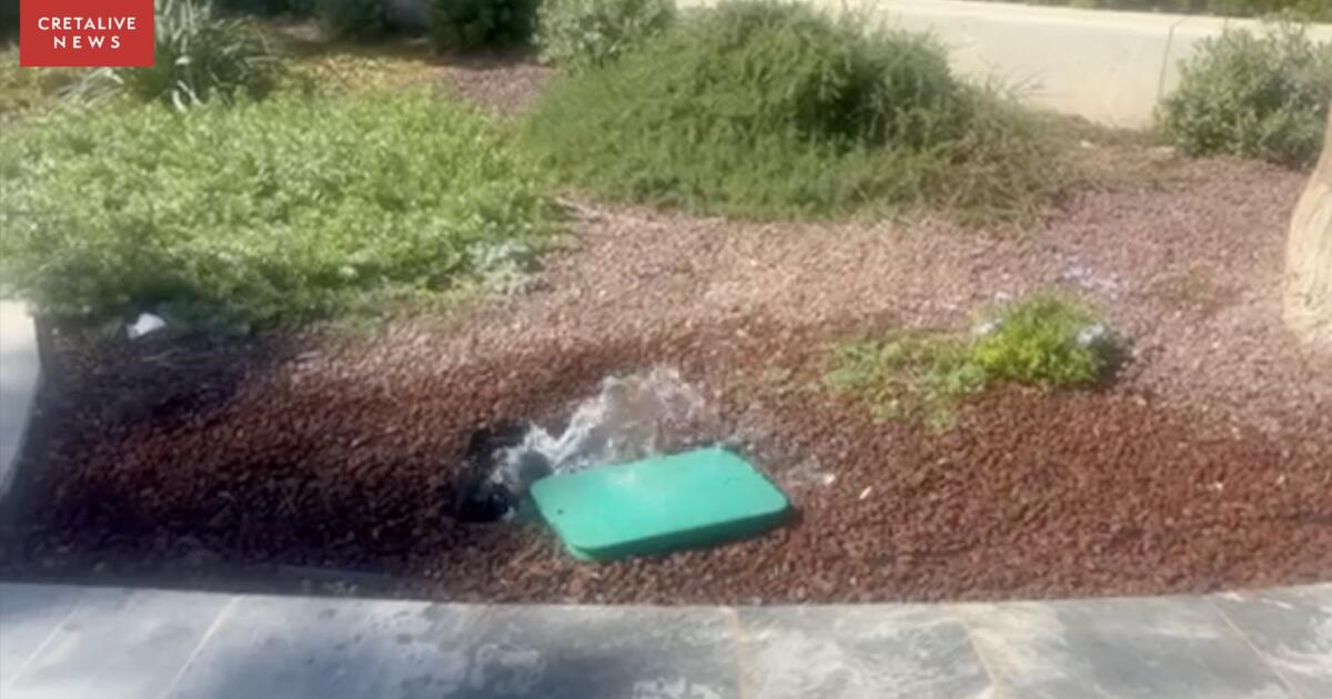 Σαν από μίνι... πίδακα αναβλύζει το νερό σε μια από τις νησίδες πρασίνου που πρόσφατα φυτεύτηκαν στην Πλατεία Ελευθερίας στο Ηράκλειο.