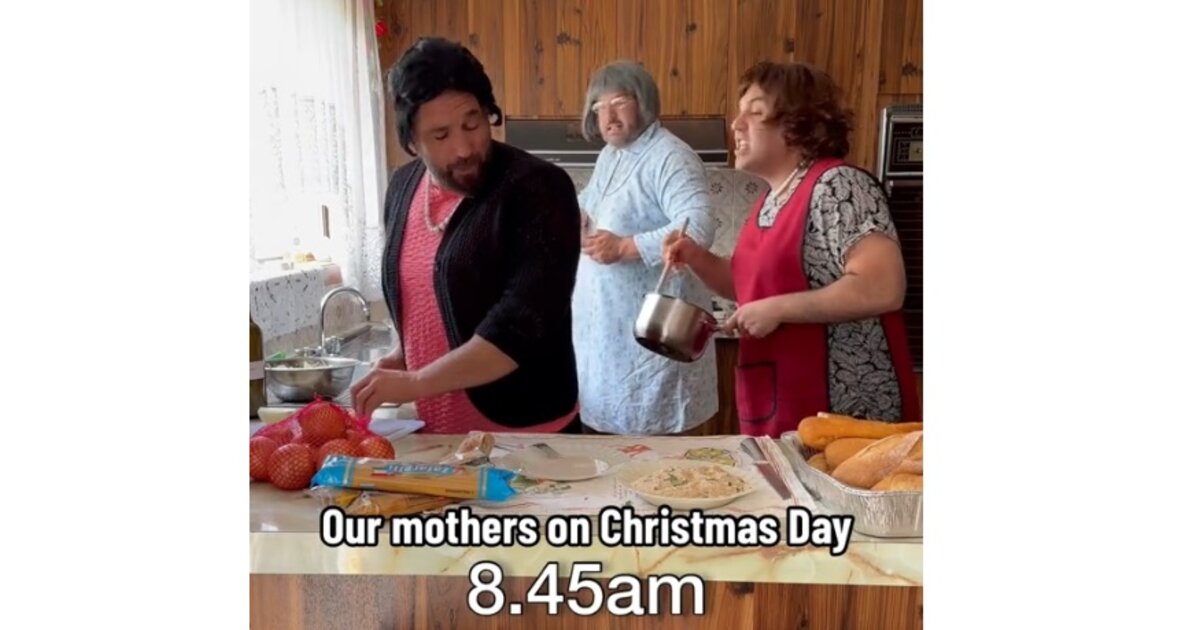 Το βίντεο δημοσιεύθηκε στο TikTok από τον λογαριασμό του χρήστη «sooshimango» και δείχνει τρεις άνδρες, να αποτυπώνουν με χιουμοριστικό τρόπο, τη "φασαρία" που κάνουν οι μητέρες στην προσπάθειά τους να ετοιμάσουν το γιορτινό τραπέζι, ανήμερα των Χριστουγέννων.