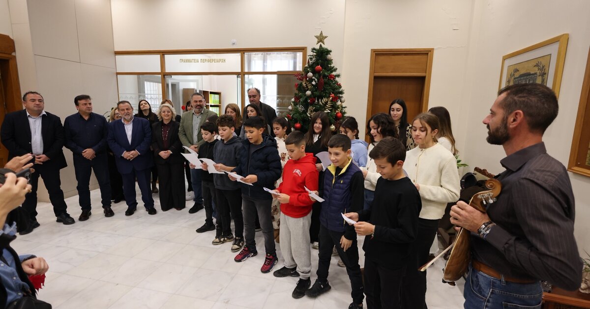 Μια ιδιαίτερα συγκινητική στιγμή καταγράφηκε το πρωί της Δευτέρας στην Περιφέρεια Κρήτης, όπου μαθητές της ΣΤ' Τάξης του Δημοτικού Σχολείου Καστελλίου έψαλαν χριστουγεννιάτικα κάλαντα με βαθύ ιστορικό και συναισθηματικό φορτίο.