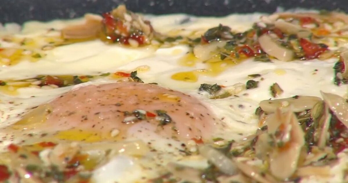 Αβγά στο τηγάνι με κρέμα από γαλοτύρι