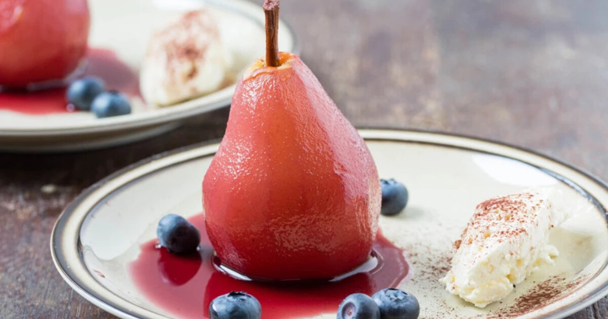 Αχλάδια με σάλτσα κόκκινου κρασιού
