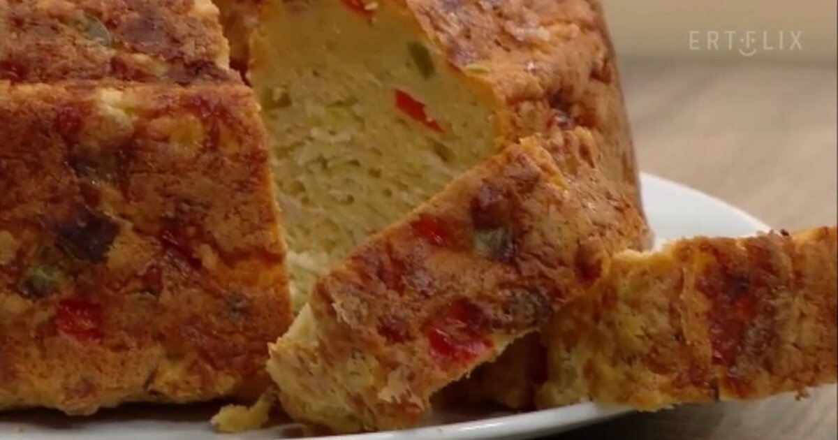 Αλμυρό κέικ με Γραβιέρα Αγράφων, πιπεριές και αλλαντικά