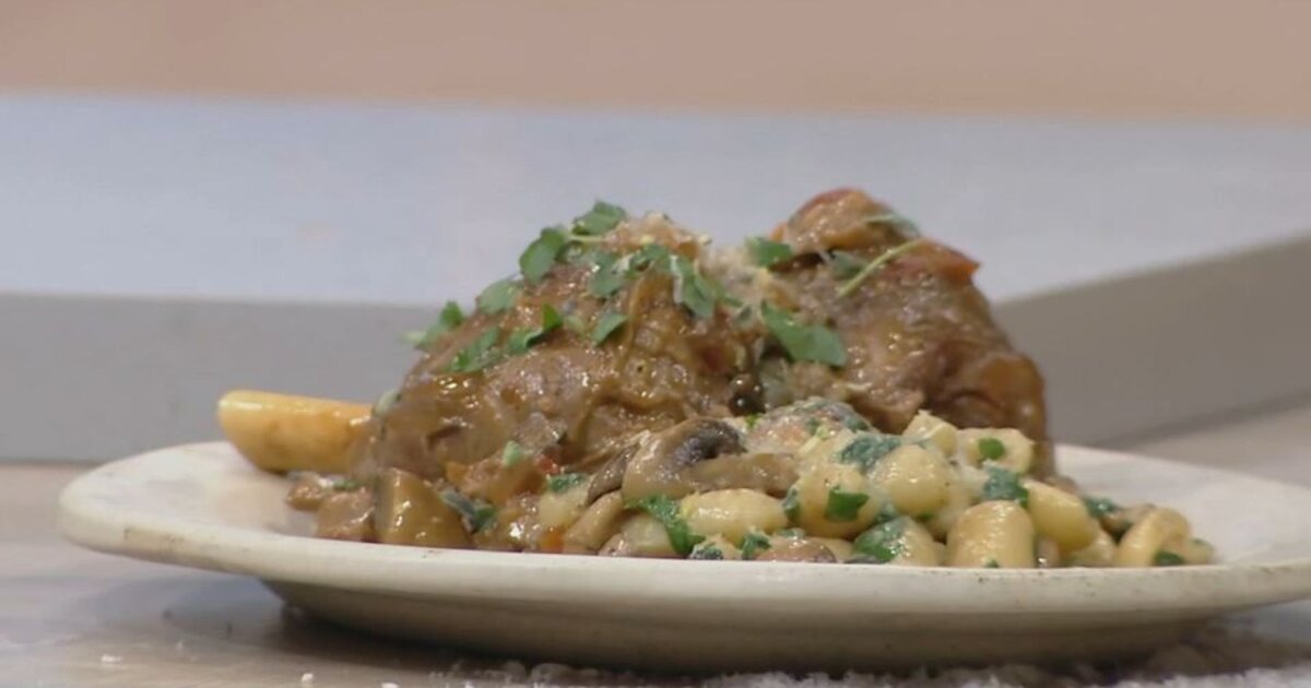 Αρνάκι μαγειρευτό με μανιτάρια και γκόγκες