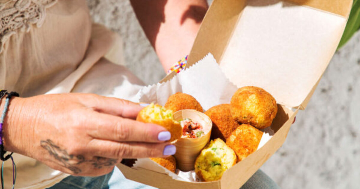 Δείτε τη συνταγή για φαβολουκουμάδες με ντιπ ντομάτας και κάππαρης.