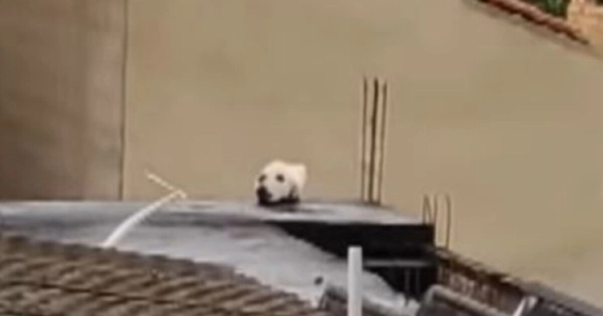 Στο βίντεο με τίτλο «Απροσδόκητο» φαίνεται ένας λευκός σκύλος με σκούρα μύτη και στόμα να βρίσκεται πάνω στην άκρη μιας στέγης.