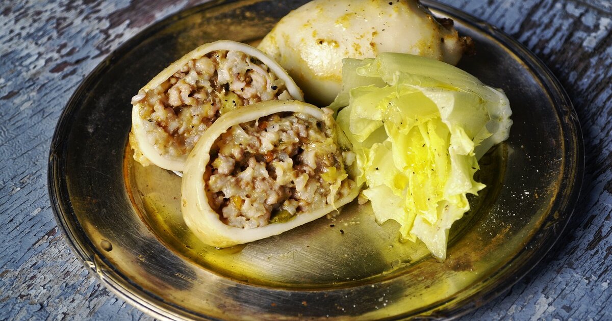 Καλαμάρι γεμιστό με ρύζι και μυρωδικά