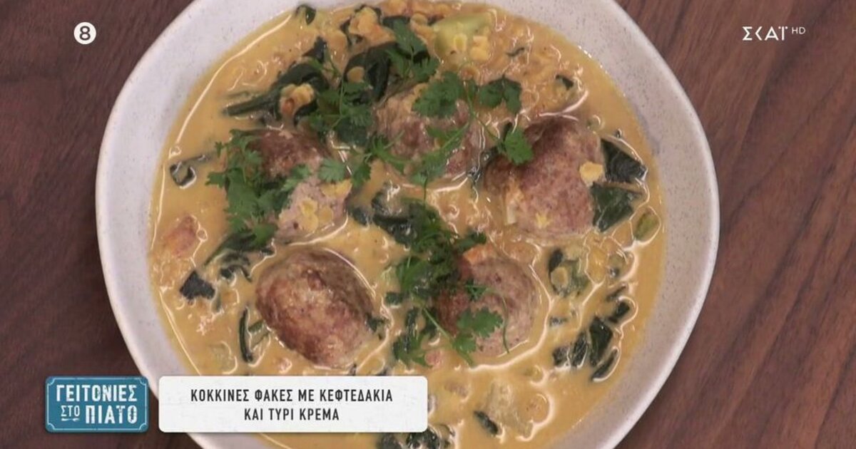 Κόκκινες φακές με κεφτεδάκια και τυρί κρέμα