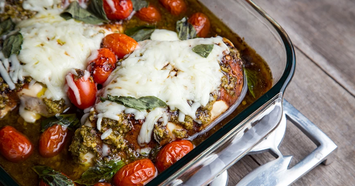 Τοποθετήστε τα ντοματίνια πάνω από το κοτόπουλο και σερβίρετε.