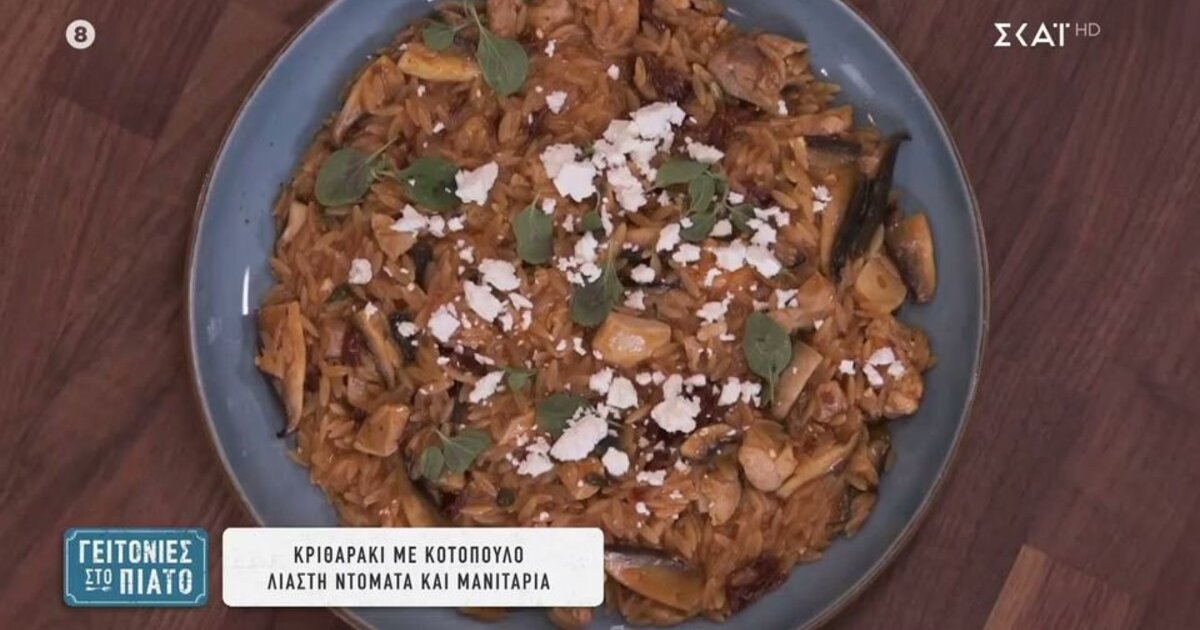 Κριθαράκι με κοτόπουλο, λιαστή ντομάτα και μανιτάρια