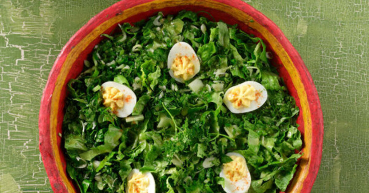 Μαρουλοσαλάτα με μυρωδικά και αυγά γεμιστά