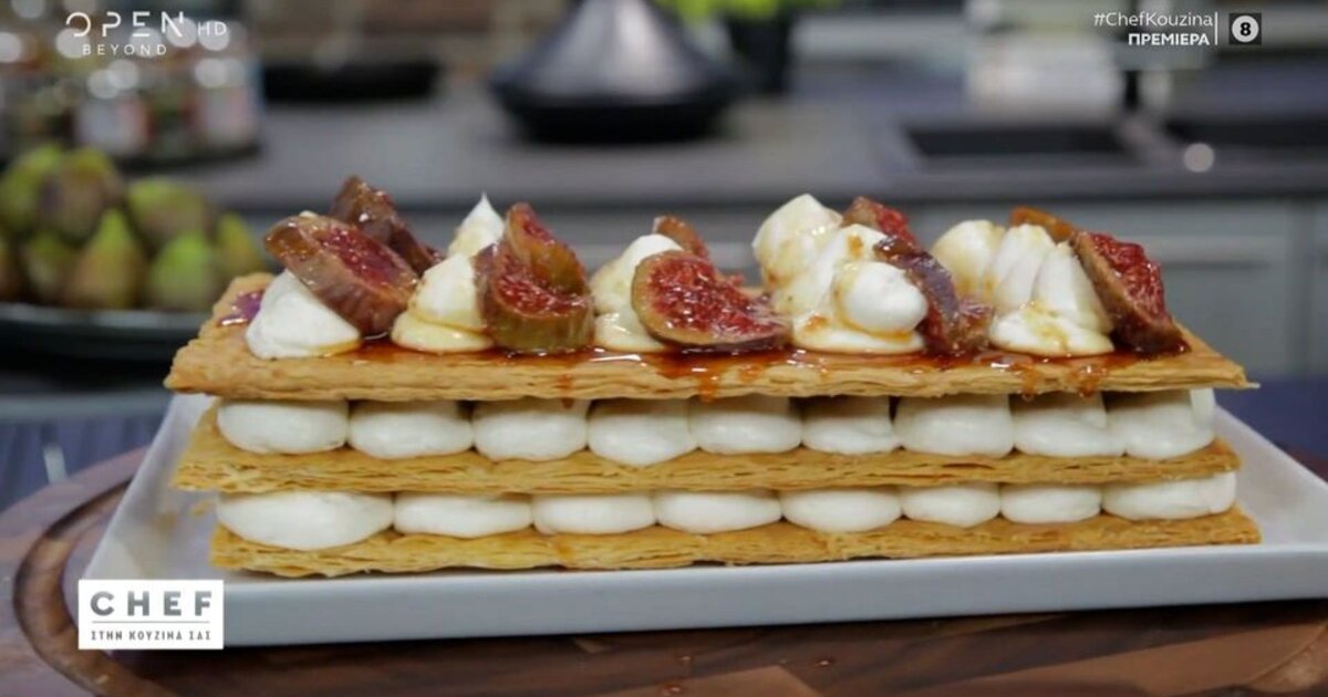 Μιλφέιγ με κρέμα λευκής σοκολάτας και καραμελωμένα σύκα