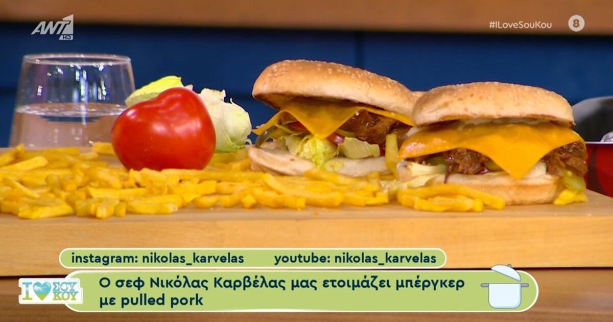 ΕΚΕΙΝΟΣ & ΕΚΕΙΝΗΜπέργκερ με pulled pork Δια χειρός Νικόλα Καρβέλα08.06.2024NewsroomSHARE: Facebook Twitter Messenger Whatsapp Viber SHARE Facebook Twitter Messenger Whatsapp Viber FacebookTwitterMessengerWhatsappViber Ο σεφ Νικόλας Καρβέλας μας ετοιμάζει μπέργκερ με pulled pork.Βήμα -βήμα η συνταγή: Ακολουθήστε το Cretalive στο Google News και στο FacebookΚάντε εγγραφή στο κανάλι μας στο YouTube Σχετικά Tags Μπέργκερ Νικόλας Καρβέλας