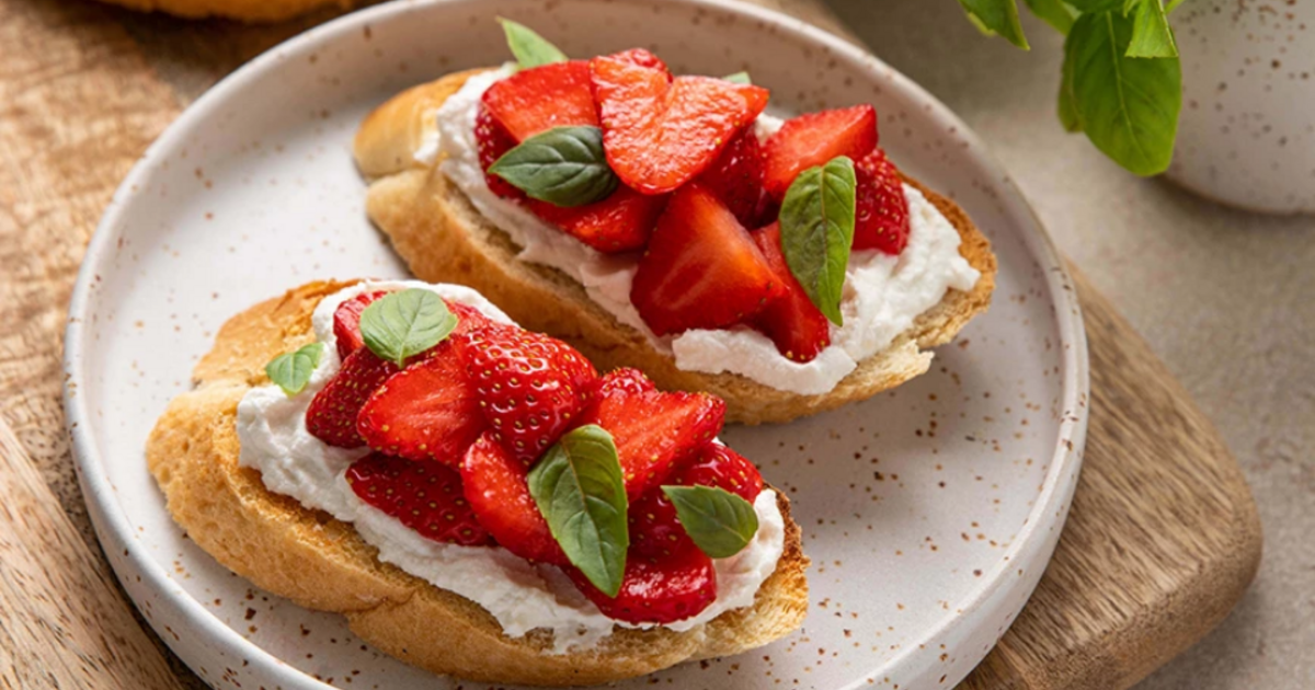 Μπρουσκέτες με κατσικίσιο τυρί και φράουλες