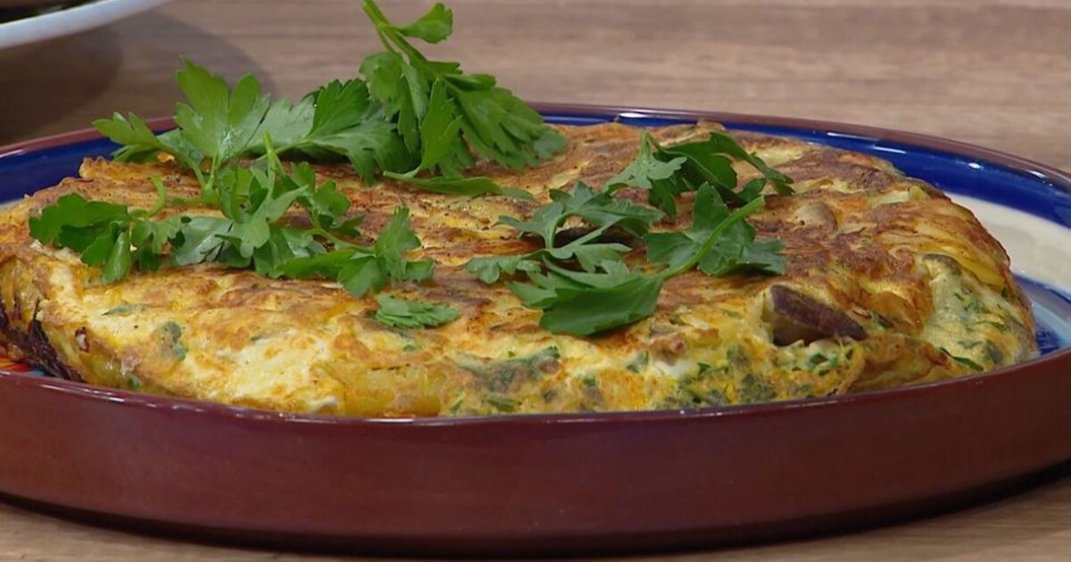 Ομελέτα με πατάτες Αμαλιάδας και μανιτάρια στο τηγάνι